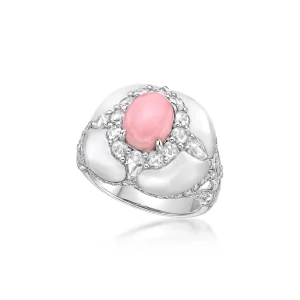 Oceanic Opulence: Diamond, Coral, and Mother of Pearl Ring